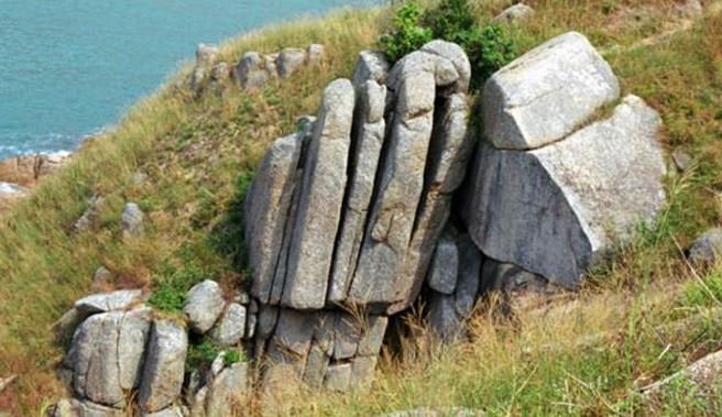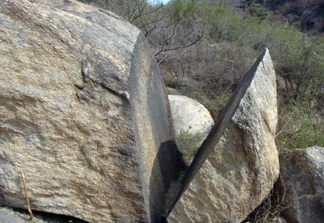 试剑石从石棚山南路上山,一块大石像是被剑劈开,剑痕清晰。传说刘备试剑石。