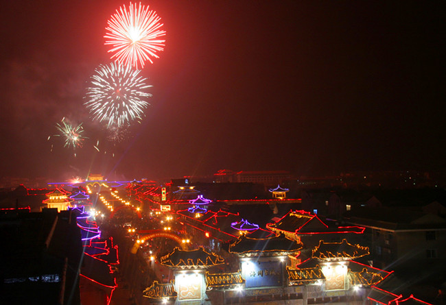 古城夜晚流光溢彩