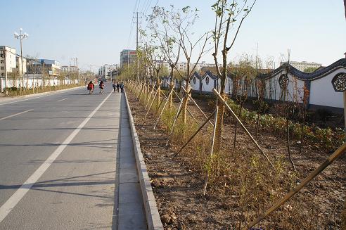 本周完成苗木栽植约100亩。目前,完成中心路及次干道铺设,完成渠道开挖及地块整理,完成约400亩苗木栽植,正在进行剩余苗木栽植。
