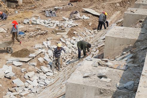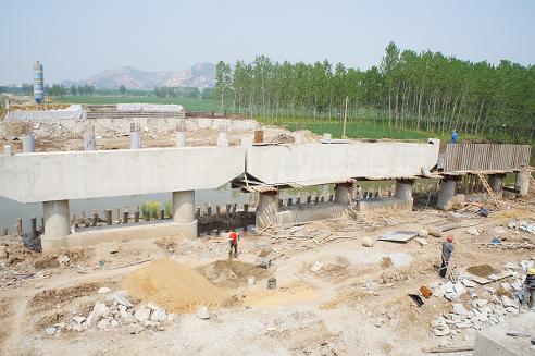 本周通灌南路完成南段剩余700米快车道沥青路面摊铺;迎宾大道跨西盐河桥完成河东侧石砌护坡施工、剩余1道系梁钢筋及模板制作,完成河西侧剩余1道承台钢筋制作;迎宾大道西延开始路基清表施工。累计完成通灌南路许庄小学以北快车道沥青路面施工,完成1200米路牙石铺设,准备进行慢车道基础施工;完成迎宾大道西延工程招投标,正在进行路表清理;完成迎宾大道跨西盐河桥桥东立柱、承台施工,正在进行桥西承台、系梁、桥板以及桥墩盖梁制作。