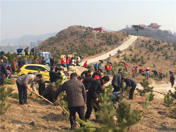 3月11日上午,南城街道组织全体党员干部在南城西凤凰山进行义务植树活动,为南城街道绿化工作添绿增彩。