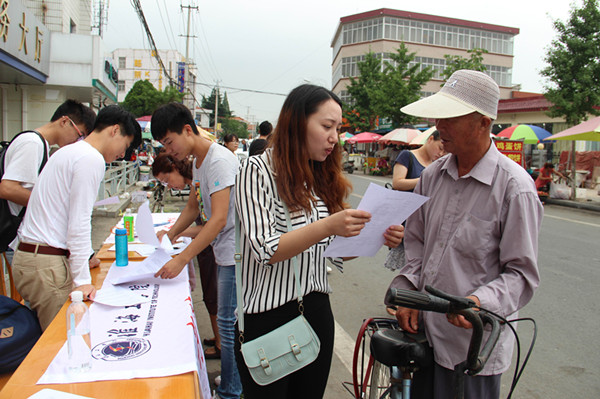 电子工程学院分队,上午以“关爱环境人人有责”为主题对大村社区主干道垃圾进行清理,以自己行动美化乡村环境,宣传环境保护的重要性。下午以“夏季保健养生”为主题走进村民家中向村民宣传夏季养生保健知识,受到村民的热情接待;法学院分队,上午以“全民阅读乡村行””为主题,在街道财政所大厅前设立摊点宣传鼓励村民参与到阅读中,并发放调查问卷,对乡村群众的阅读情况进行调查。下午以“溺水急救知识宣传”为主题,发放宣传资料并现场教学演示宣传夏日溺水急救知识,吸引来往群众驻足聆听、观看;文学院分队,白天以“弘扬社会主义核心价值观”为主题,发放宣传资料对十八大、十八届三中、四中全会精神、“三严三实”教育进行宣传。晚上7点在街道文化大礼堂前场地播放红色电影,传扬老一辈传统优良精神。