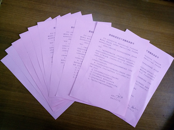 为进一步引导党员干部贯彻执行《两个条例》,新年伊始,新南街道党工委班子全体成员就率先垂范,作出廉政承诺,机关中层、社区书记也纷纷围绕区纪委“四坚持、十禁止”的要求,作出庄严承诺。廉政承诺活动使党员干部进一步明确“立党为公、执政为民”,把不断维护好辖区居民群众的利益作为一切工作的出发点和落脚点。
